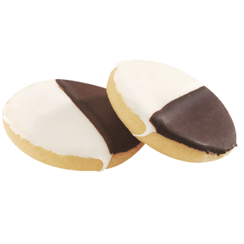 The most iconic cookie of all time. The one cookie that doesn't ask you to choose sides. The cake-like cookie with both chocolate and vanilla icing that holds a colorful place in your heart. Our mini version is just like the Black and White of your childhood. Only smaller. And cuter.