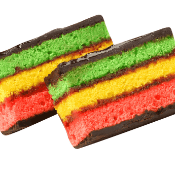 A spectrum of flavors. The promise of smiles. Reisman's Rainbow Cookies delight with colorful stripes of green, yellow and pink, with a smooth chocolate layer on top and bottom. Discover something better than a pot of gold - in taste, that is!