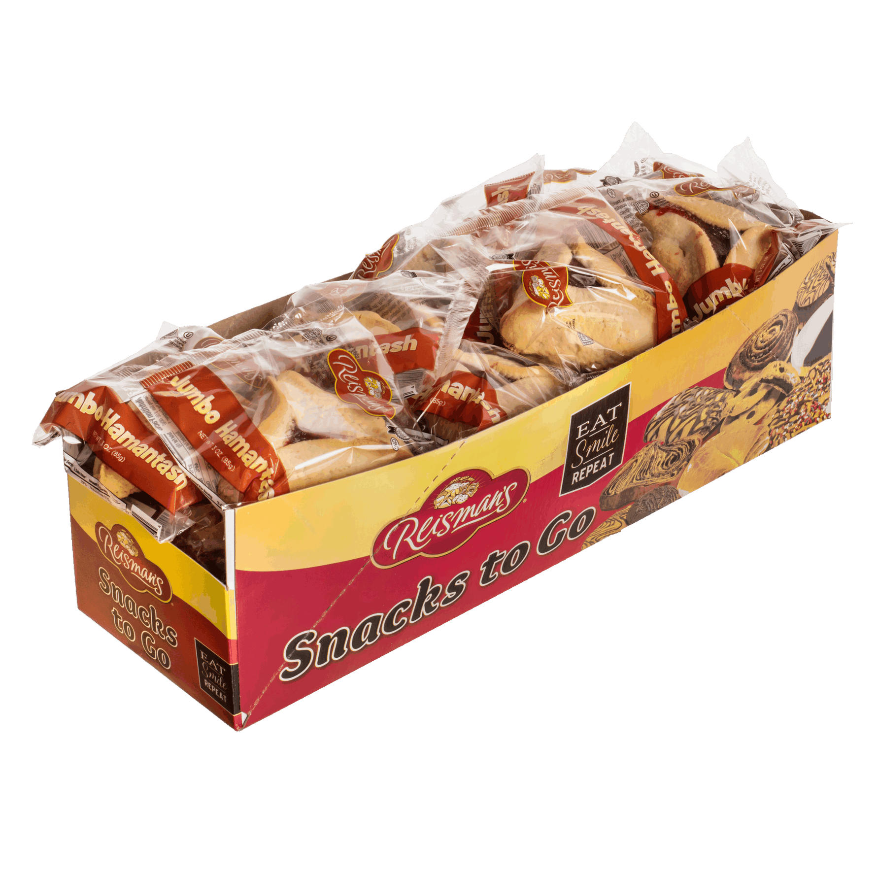 Each individually wrapped package contains one Chocolate hamantasch
