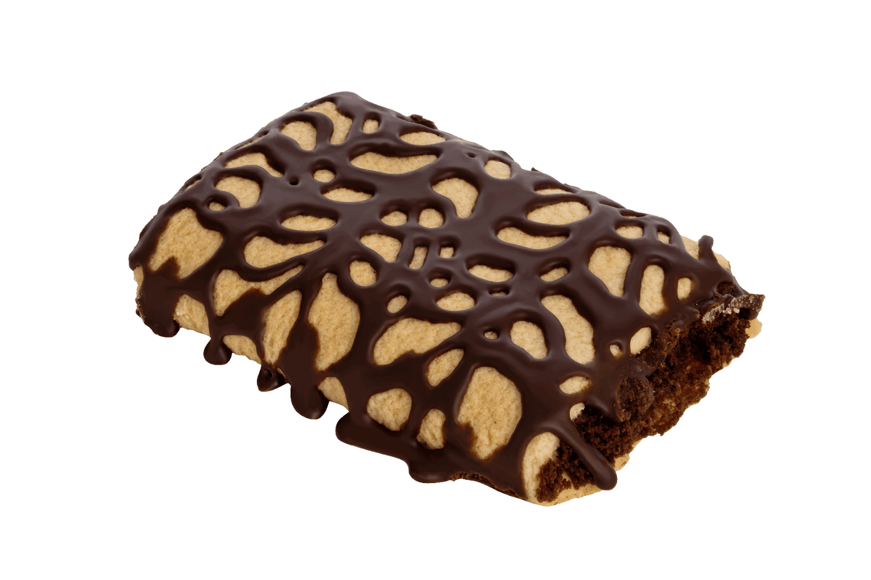 The amount of flavor in this snackable bar is to the max. Soft, tender cookie enfolds a rich chocolate brownie filling, all topped with drizzle upon drizzle of chocolate icing. Try one on for size. It’s sure to fit your appetite for homestyle goodness.