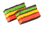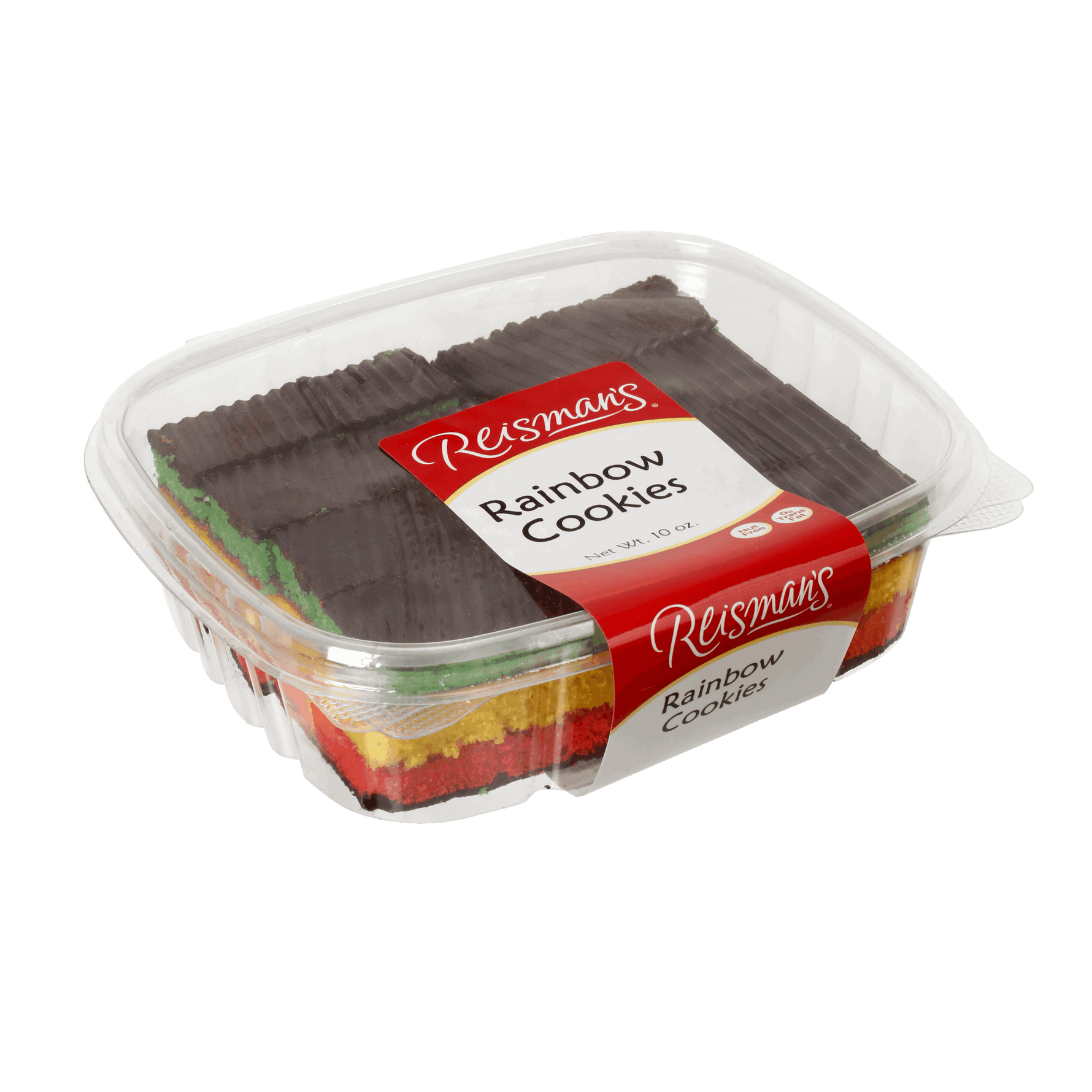 A spectrum of flavors. The promise of smiles. Reisman's Rainbow Cookies delight with colorful stripes of green, yellow and pink, with a smooth chocolate layer on top and bottom. Discover something better than a pot of gold - in taste, that is!